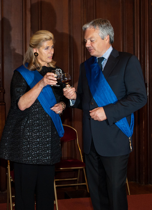 « Ce mardi 8 mai, en présence notamment de Sabine Laruelle, j’ai remis la décoration de Chevalier de l’Ordre de la Couronne à Olivier Theunissen, antiquaire et expert en œuvres d’art. »[note] Voilà ce qu’on trouve sur le site de Didier Reynders, qui ce 8 mai 2012 appose sa signature en dessous du brevet qui fait d’Olivier René Albert Theunissen, antiquaire, expert en œuvres d’art à Lasne, Chevalier de l’Ordre de la Couronne. Outre Sabine Laruelle, on retrouve aussi… Jean-Claude Fontinoy. Ce dernier, qu’on croise également lors d’une réception au Sablon donnée par le chevalier Nicolas de Ghellinck d’Elseghem et M. Olivier Theunissen, pour les 25 ans de leur association.