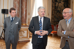 Geoffroy Generet, le jour de sa décoration de Chevalier de l’Ordre de la Couronne, remise par Didier Reynders, avec Olivier Theunissen derrière