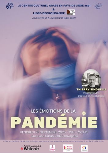 « Les émotions de la pandémie », conférence de Thierry Simonelli au Centre culturel arabe de la Province de Liège, vendredi 26 septembre 2025, co-organisé par le CCAPL et Liège-Décroissance.