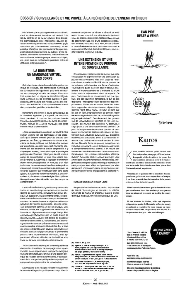 - ↑ Et dont on se sert, en fin de processus d’exclusion, comme esclaves modernes. Écouter ici: http://www.kairospresse.be/article/cellmade