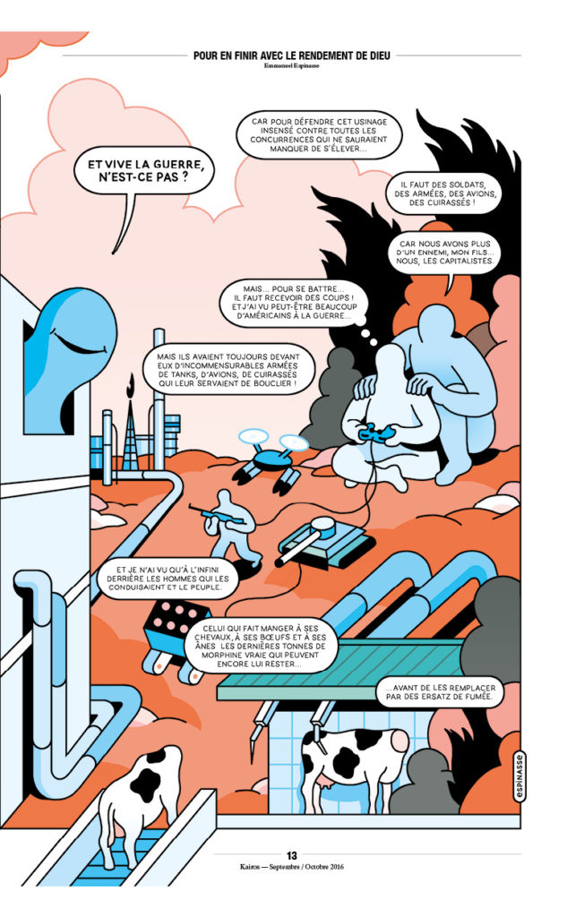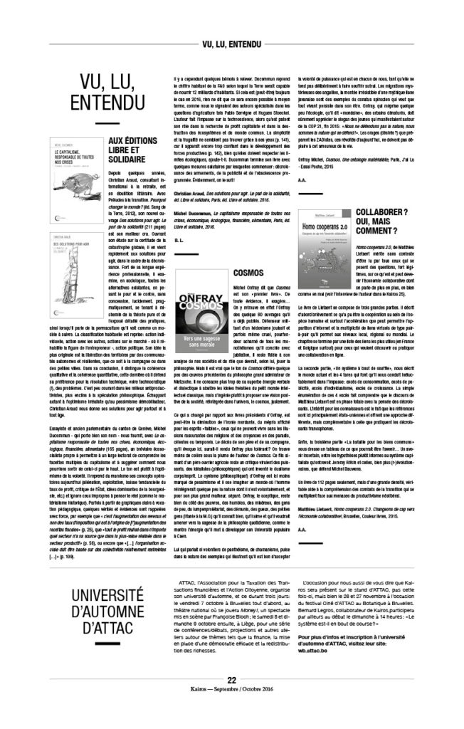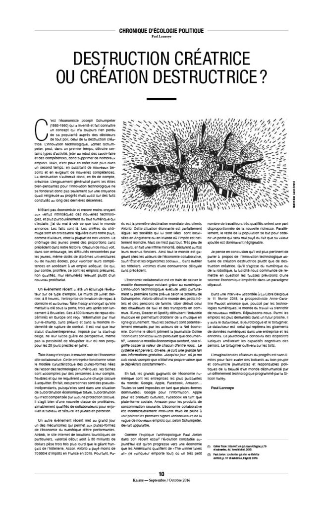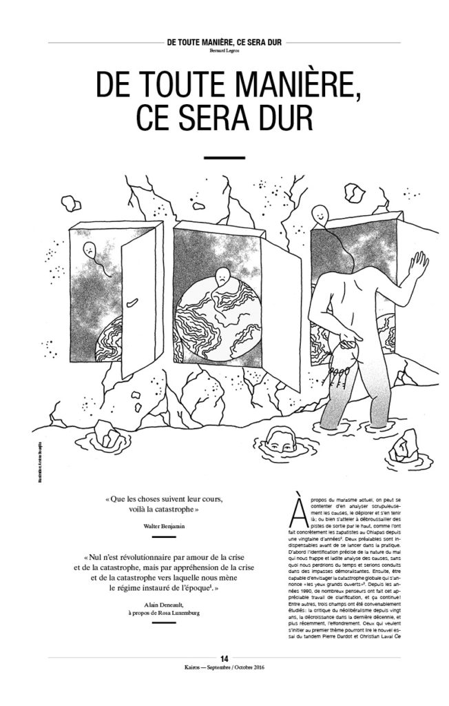 Pour ceux qui palabrent encore et se demandent si lutte sociale et écologique sont compatibles, privilégiant le versant de la première dans la défense inconditionnelle de l’emploi, on voudrait leur rappeler ce que disait le Marx philosophe: «La production capitaliste ne développe donc la technique et la combinaison du processus de production sociale qu’en épuisant en même temps les deux sources d’où jaillit toute richessela terre et le travailleur»[4]; se souvenir que l’exploitation de l’un se fait toujours au détriment de l’autre, et que le changement ne viendra donc que de la disparition de transnationales comme Caterpillar, orchestrée par le bas, certes (détruisant alors eux-mêmes les emplois destructeurs, changeant les slogans du sauvetage de l’emploi par des «brûlons Caterpillar»).