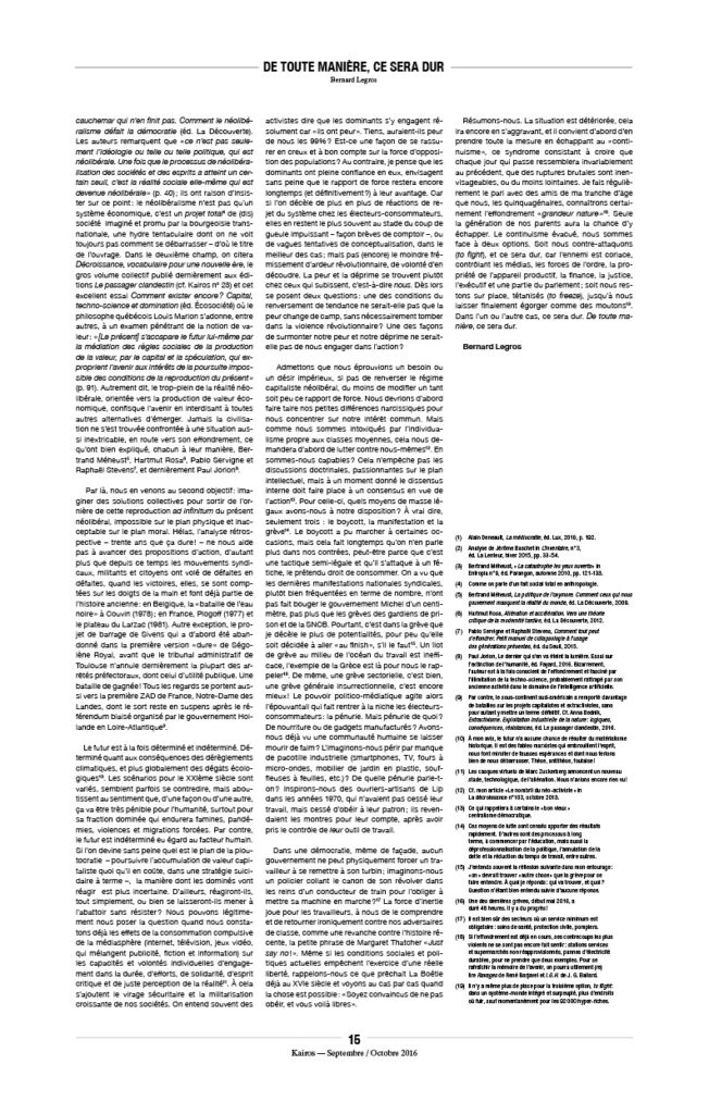 De fait, cela nécessitera que certains réalisent que «sauver le climat sans toucher aux emplois» n’est pas envisageable, sauf à lutter pour le capitalisme en disant lutter contre…
