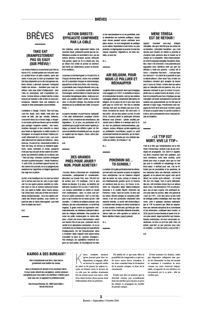 L’esclave des mines du Brésil ou du Congo gagne-t-il quelque chose avec la fermeture de Caterpillar? Certes, non… comme le diront les infatigables défenseurs du « si ce n’est pas chez nous qu’on le produit, ce sera de toute façon chez d’autres »[3]. Nous voulons pourtant opposer à cette forme de résignation la possibilité de joindre dans nos luttes l’esclave du «Sud» avec celui du «Nord» et dire que Caterpillar n’est guère bon… pour personne.