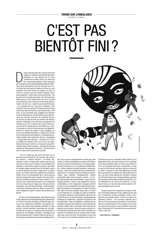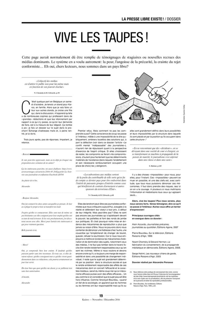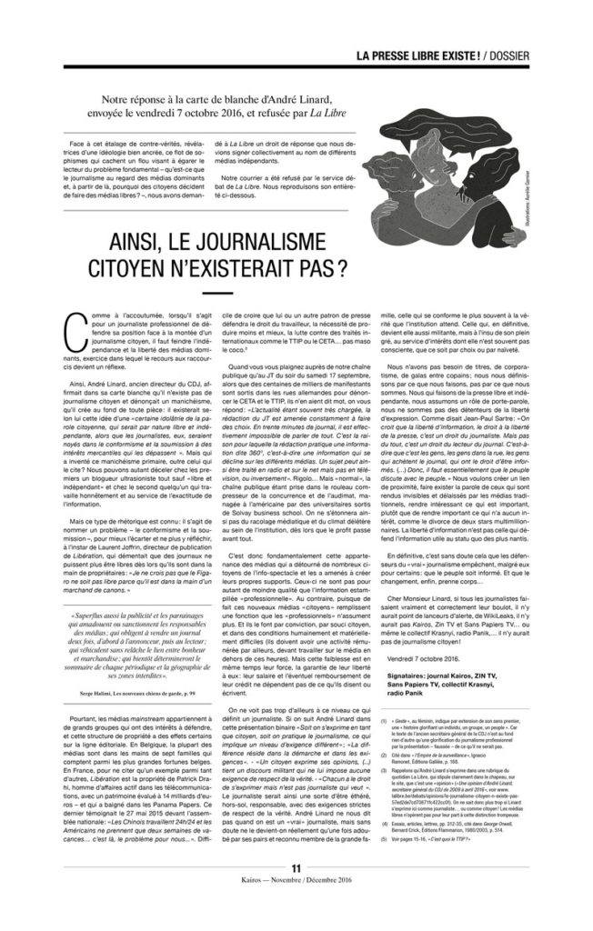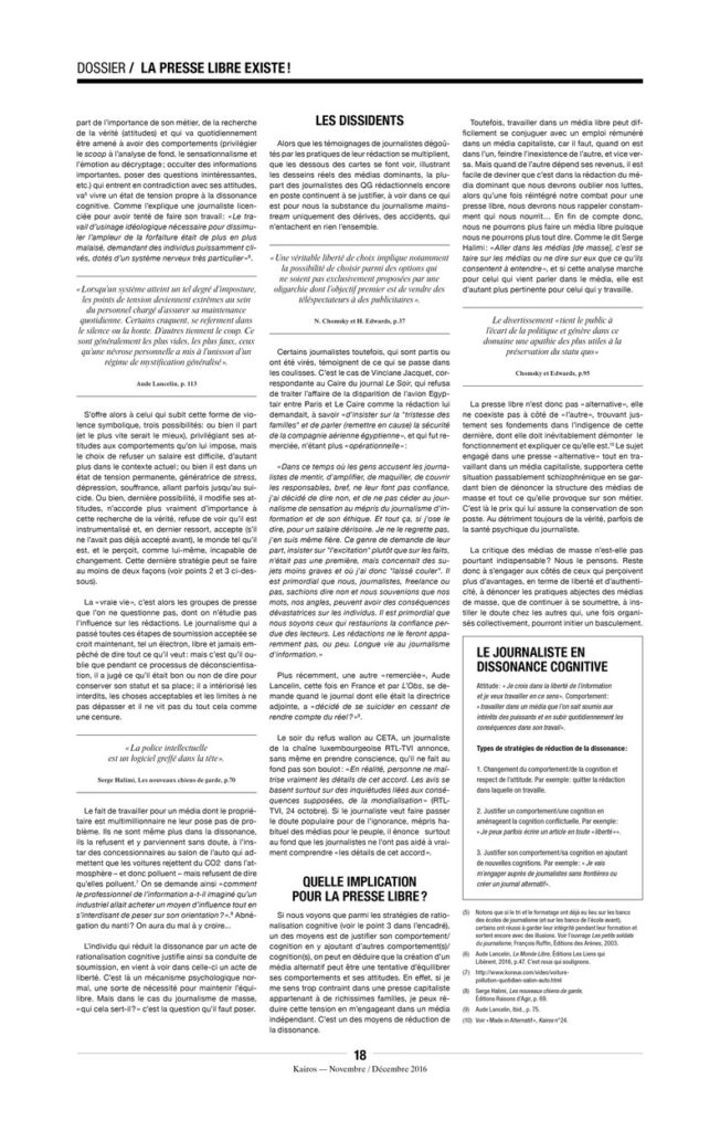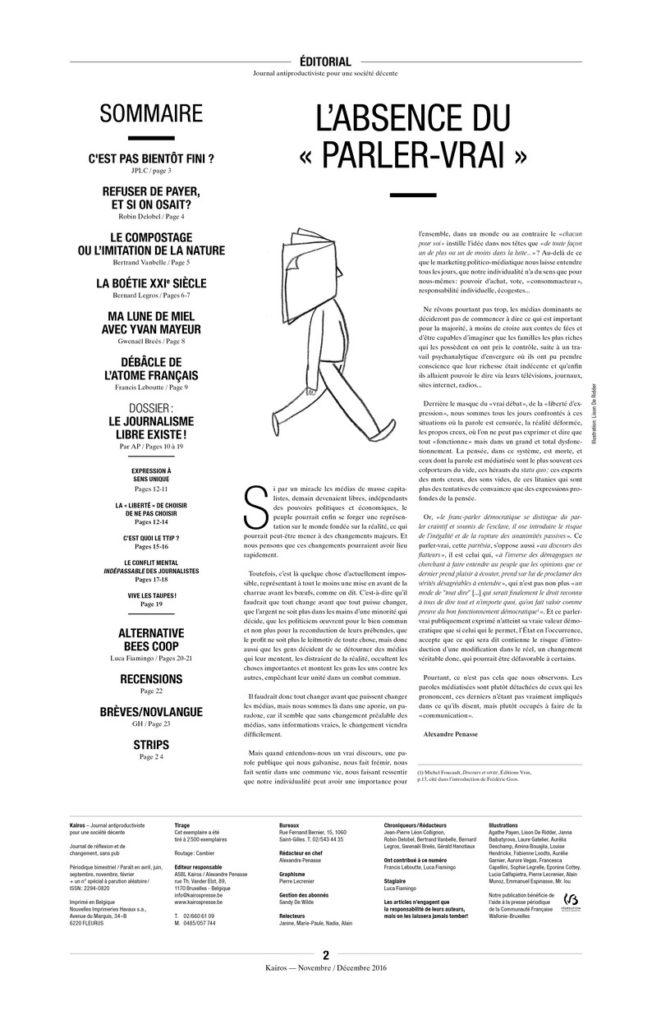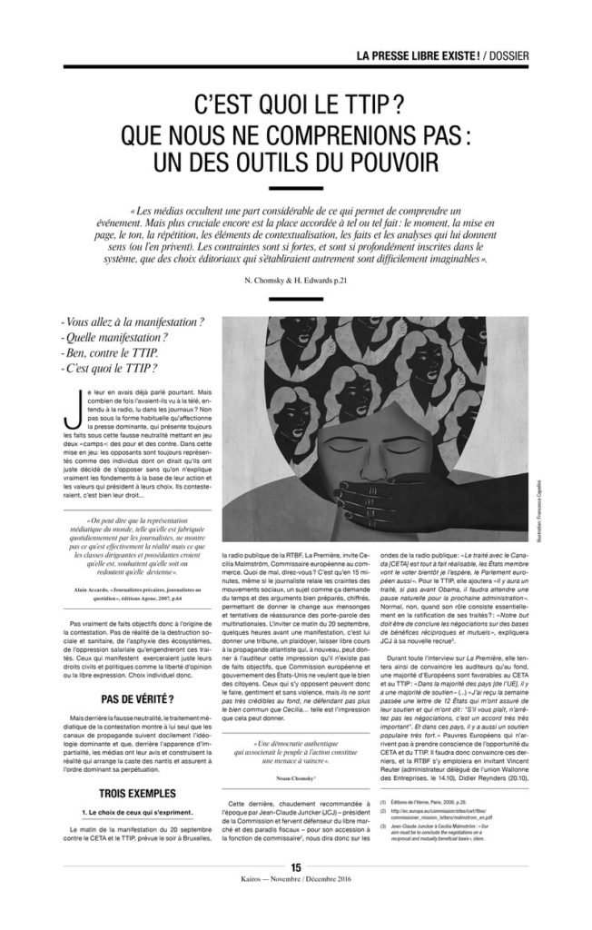 Ne rêvons pourtant pas trop, les médias dominants ne décideront pas de commencer à dire ce qui est important pour la majorité, à moins de croire aux contes de fées et d’être capables d’imaginer que les familles les plus riches qui les possèdent en ont pris le contrôle suite à un travail psychanalytique d’envergure où ils ont pu prendre conscience que leur richesse était indécente et qu’enfin ils allaient pouvoir le dire via leurs télévisions, journaux, sites internet, radios…