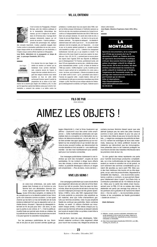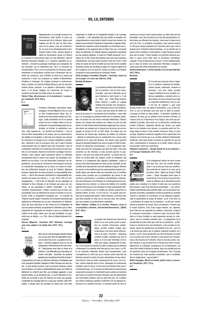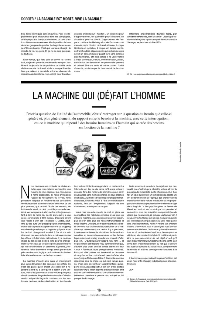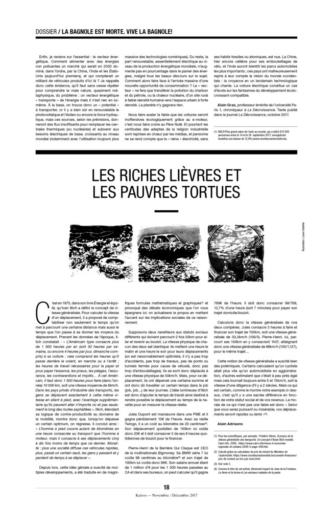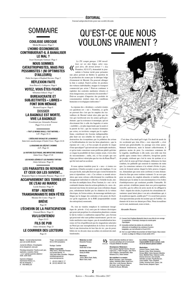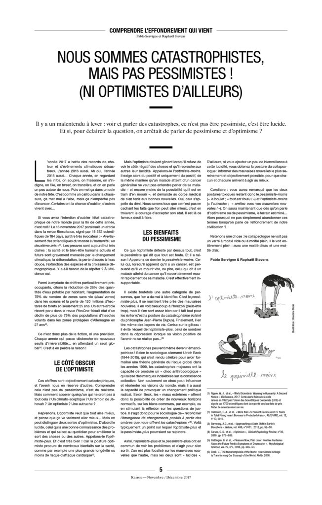 Si nous optons toutefois pour le non à toutes ces questions, il faudra accepter ce que cela implique. Ce ne sera pas facile, mais plus heureux que si nous fermions les yeux et répondions « oui ». Car refuser ce monde nécessitera que nous créions collectivement les conditions du changement individuel et collectif, à l’échelle locale, imitée dans de multiples lieux. Pour l’instant, le « oui » de la continuité domine dans les actions globales, le « non » demeurant une forme de surmoi que nous refoulons chaque jour, refoulement facilité par les chimères de la voiture électrique, de l’avion solaire, du mensonge médiatico-politique sur le danger des centrales et des peurs de black-out qu’ils organisent, de la RSE (responsabilité sociale des entreprises) rassurante.