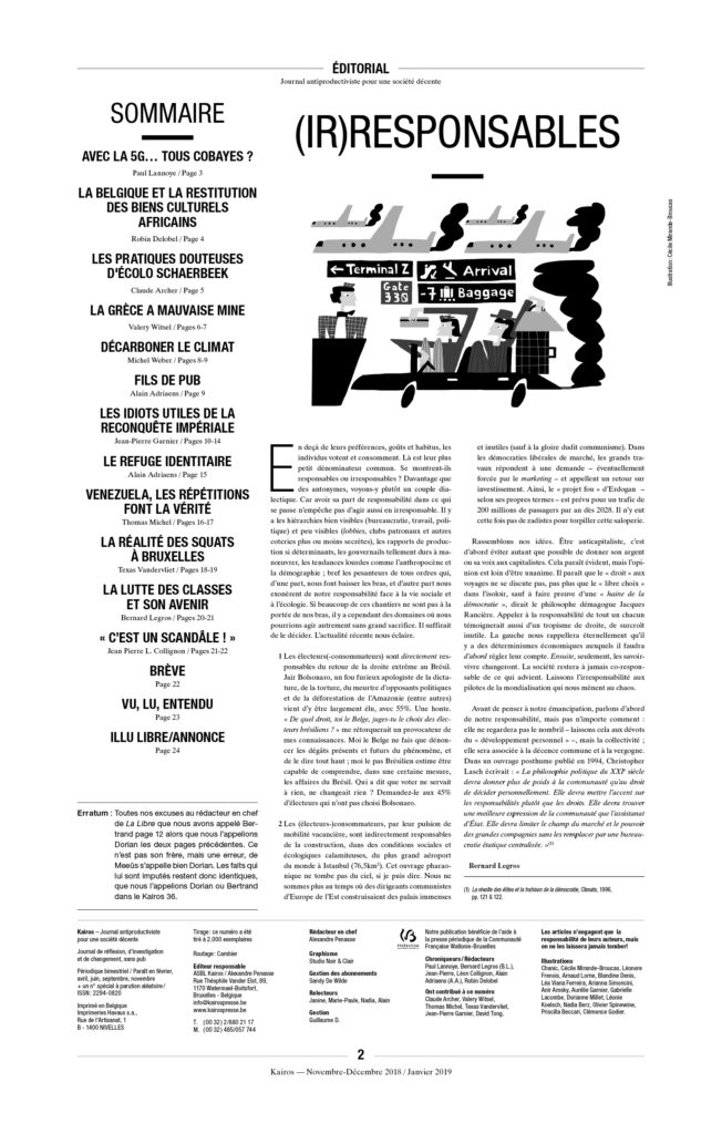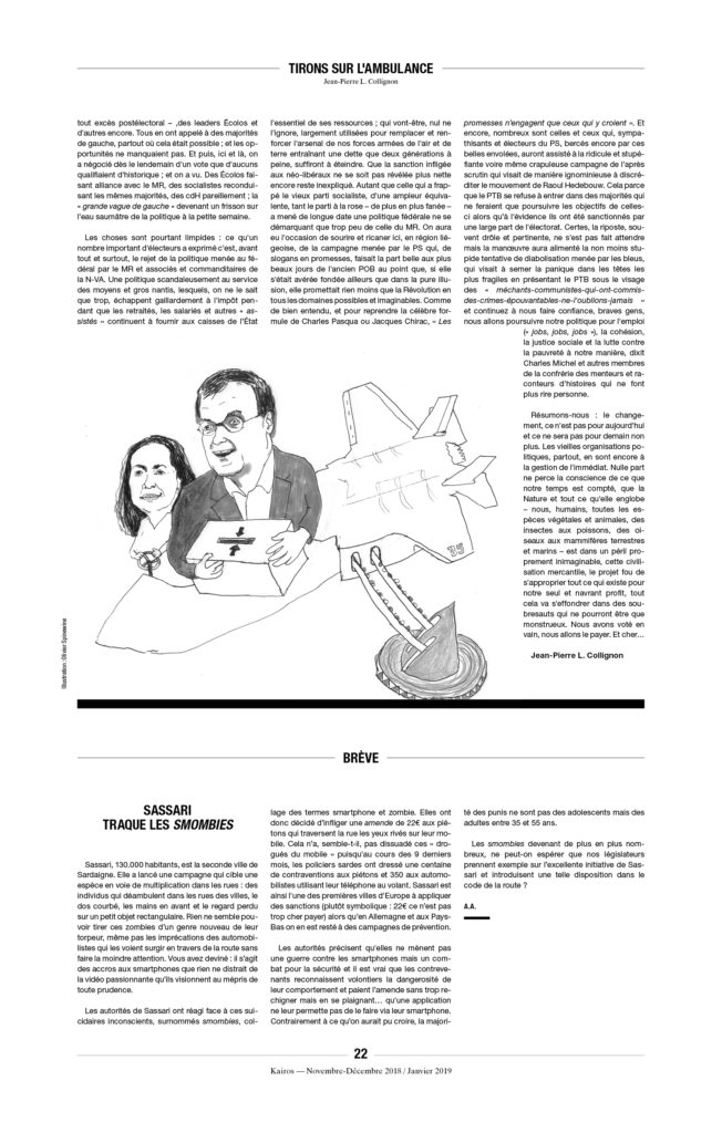 • Les électeurs(-consommateurs) sont directement responsables du retour de la droite extrême au Brésil. Jair Bolsonaro, un fou furieux apologiste de la dictature, de la torture, du meurtre d’opposants politiques et de la déforestation de l’Amazonie (entre autres) vient d’y être largement élu, avec 55%. Une honte. « De quel droit, toi le Belge, juges-tu le choix des électeurs brésiliens ? » me rétorquerait un provocateur de mes connaissances. Moi le Belge ne fais que dénoncer les dégâts présents et futurs du phénomène, et de le dire tout haut ; moi le pas Brésilien estime être capable de comprendre, dans une certaine mesure, les affaires du Brésil. Qui a dit que voter ne servait à rien, ne changeait rien ? Demandez-le aux 45% d’électeurs qui n’ont pas choisi Bolsonaro.