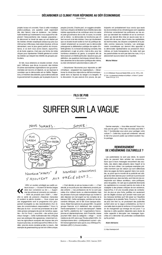 En deçà de leurs préférences, goûts et habitus, les individus votent et consomment. Là est leur plus petit dénominateur commun. Se montrent-ils responsables ou irresponsables ? Davantage que des antonymes, voyons-y plutôt un couple dialectique. Car avoir sa part de responsabilité dans ce qui se passe n’empêche pas d’agir aussi en irresponsable. Il y a les hiérarchies bien visibles (bureaucratie, travail, politique) et peu visibles (lobbies, clubs patronaux et autres coteries plus ou moins secrètes), les rapports de production si déterminants, les gouvernails tellement durs à manœuvrer, les tendances lourdes comme l’anthropocène et la démographie ; bref les pesanteurs de tous ordres qui, d’une part, nous font baisser les bras, et d’autre part nous exonèrent de notre responsabilité face à la vie sociale et à l’écologie. Si beaucoup de ces chantiers ne sont pas à la portée de nos bras, il y a cependant des domaines où nous pourrions agir autrement sans grand sacrifice. Il suffirait de le décider. L’actualité récente nous éclaire.