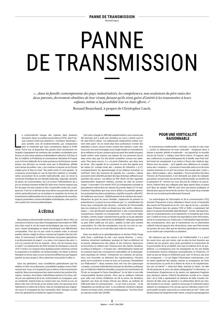 Si la situation actuelle devait nous enseigner une vérité, c’est sans doute celle que c’est à la mesure d’une modification obligée de nos « habitudes » que nous pouvons prendre le temps de nous arrêter et de penser. Mais a-t-on vraiment modifié toutes nos habitudes, sachant que celle qui consiste à s’informer, par le biais des mêmes médias qu’avant, a crû davantage ? Il est donc également probable que des chocs comme celui que nous vivons, puissent avoir l’effet inverse.