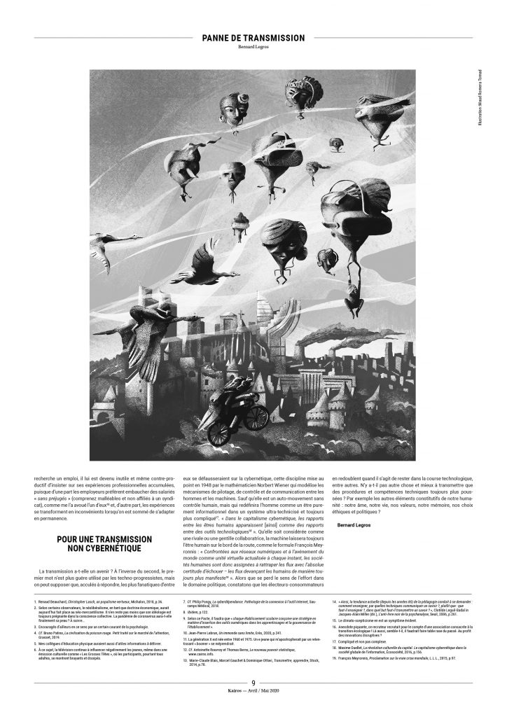 Il faudra terminer en rappelant que le neuf n’a rien de nouveau et que l’inédit ne se pare de ces habits que pour nous faire oublier qui nous sommes et pourquoi nous y sommes. Aujourd’hui, « nous sommes tous Covid-19 ». Saurons-nous en tirer les conclusions, ou, comme le disait le lucide Jaime Semprun, s’évertuer encore et toujours à « ne pas conclure » ?