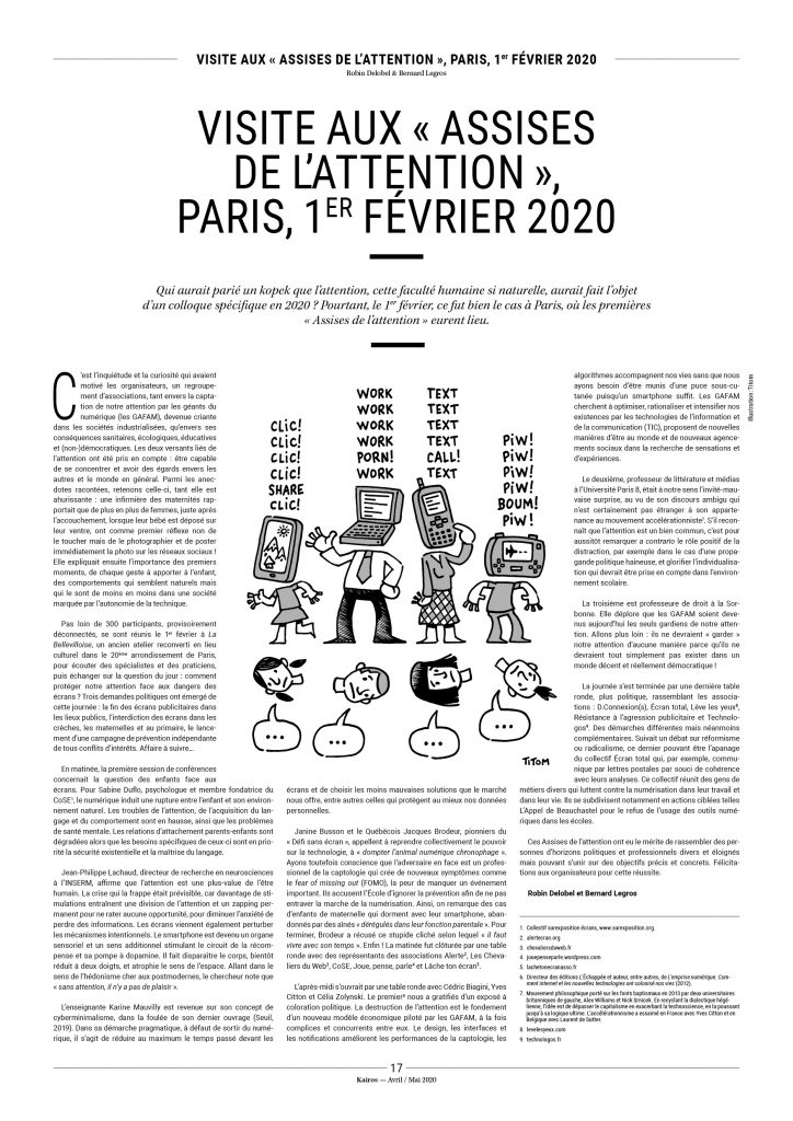 Soit, les révolutions abouties n’ont toujours été que bourgeoises. Pourquoi en changerait-il ? Nous débuterons par là, en commençant par un préliminaire toutefois, qui tentera de montrer que quelle qu’ait été la volonté d’aboutir à la crise coronovarienne présente, l’intention importe au fond peu, et c’est peut-être cela le pire : l’orgiaque est ce qui nous organise depuis longtemps, peu importe qu’il soit voulu ou non, il fait partie intrinsèque d’un mode d’organisation sociale, il en est donc sa création, toujours sa forme aboutie. L’occasion fait le larron, et tout choc fait stratégie. Le seul problème présent est que la conflagration touche ceux qui, habituellement, sont à l’abri. Avant, hier, il ne nous gênait pas trop de consommer les objets et les vêtements montés et cousus par des esclaves asiatiques, ou d’envoyer nos restes électroniques en Afrique. On le savait, l’important n’était et n’est toujours pas l’information, mais la volonté d’être libre, qui implique celle de penser. Elle se meurt, et la génération « smartphone » en signe peut-être la fin.
