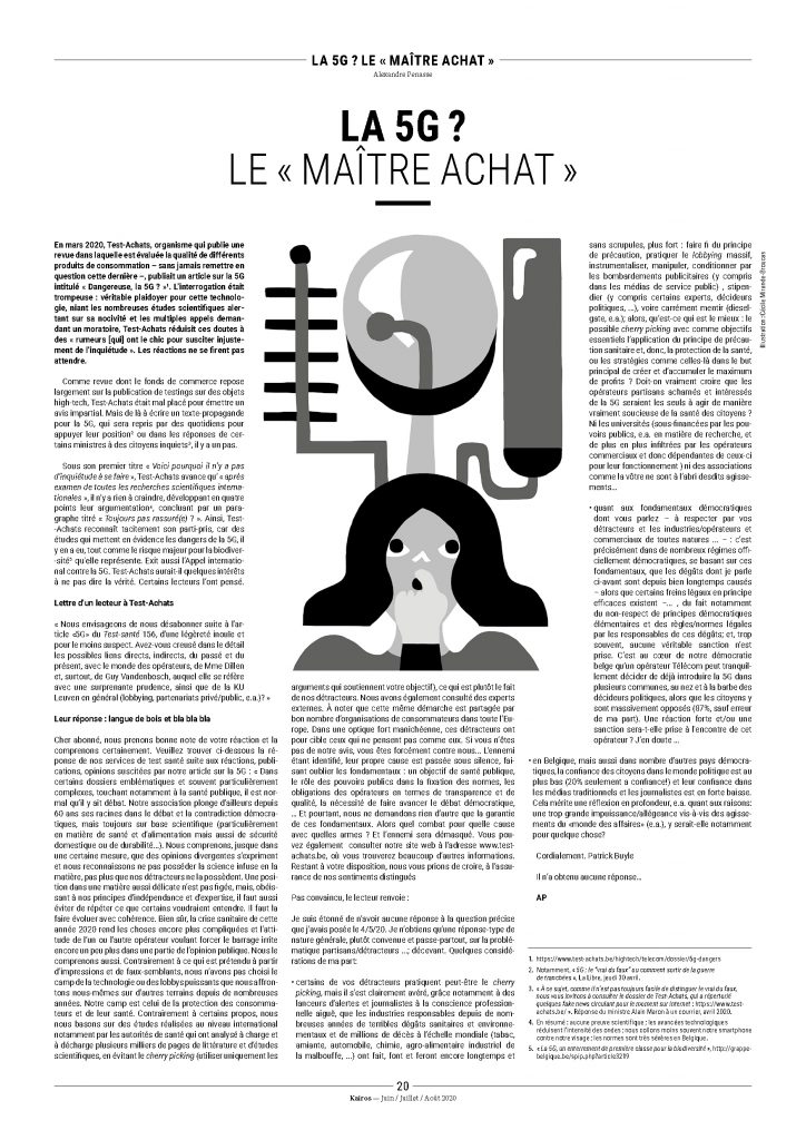 - ↑ Courrier du porte-parole de la ministre, Steve Detry, le 5 mai 2020.
