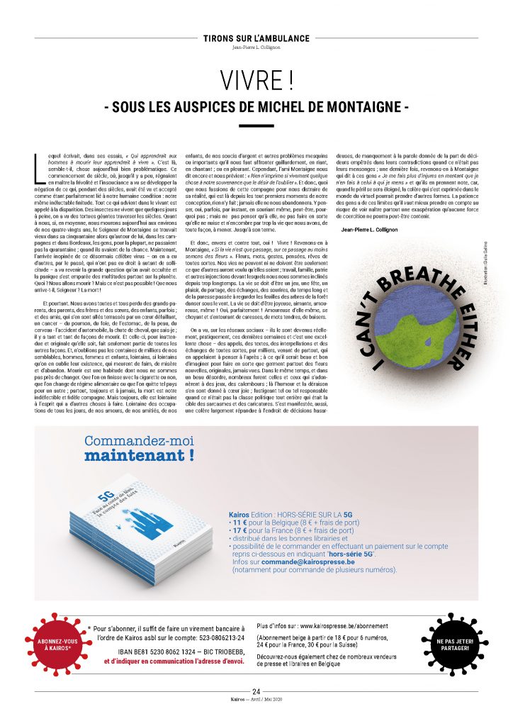 Dans cette théâtralisation de la réalité, « les grands acteurs médiatiques du paysage belge[4] » sont les garde-fous qui protègent les politiques de toutes questions qui pourraient briser leur jeu de représentation. Il n’y eut donc qu’une tentative de notre part le 15 avril, et la recherche fébrile de Sophie Wilmès pour m’empêcher de tenter un deuxième coup, soit de poser une deuxième question[5], tendant le cou et tournant la tête pour trouver le « bon » journaliste et la question conforme, illustre parfaitement le processus d’adéquation entre la pensée politique et médiatique, qui s’inscrivent dans un cadre bien défini où l’on veut s’assurer que celui qui écoute et voit, le spectateur, ne bougera surtout pas – il ne faudrait pas qu’il sente ses chaînes. Évoqueront tout autant ces ententes tacites médias-politique : le refus du ministre-président Jeholet de répondre à ma question le soir du 24 avril[6], le silence du service de presse de la ministre Wilmès face à nos multiples mails et appels téléphoniques, le mutisme encore de celle-ci face aux courriers envoyés par des citoyens l’invitant à s’expliquer sur le refus de notre présence en conférence de presse. Pourtant, comme le dira une de nos lectrices : « Elle annonce sur son site “être à l’écoute”… ». Effets d’annonce justement… procédés de com, où l’on constate que plus on se dit à l’écoute, moins on entend.
