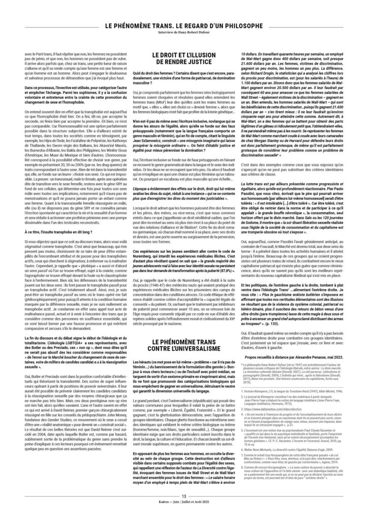 2. Charles Melman, Jean-Pierre Lebrun, La dysphorie de genre, à quoi se tenir pour ne pas glisser, Érès, 2022, pp. 36-37.