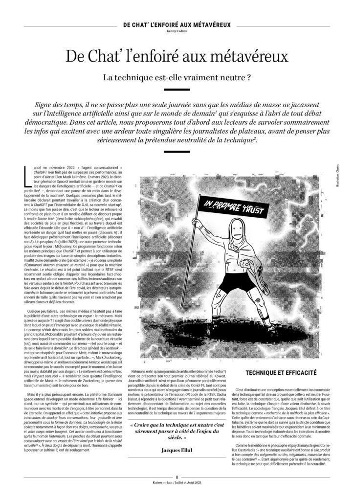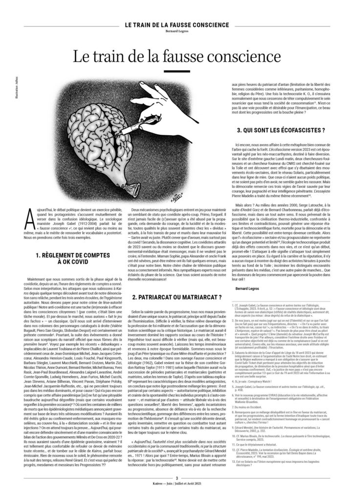 14. Il n’y a évidemment aucun déterminisme absolu, nous avons rencontré des personnes en apparence parfaitement intégrées au système qui, face aux politiques Covid, ont eu une prise de conscience globale sur la réalité du fonctionnement politique.