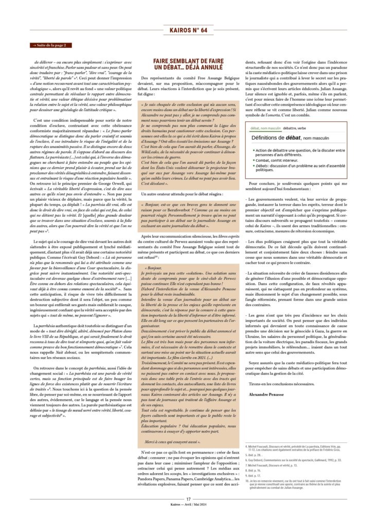 - ↑ Voir notre vidéo : https://www.kairospresse.be/reaction-assange-utilise-pour-feindre-la-liberte-dexpression