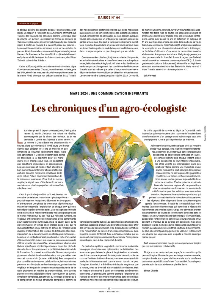 « Bonjour,Je prévoyais un peu cette «solution». Une solution sans doute de compromis pour que le ciné-club de Perwez puisse continuer. Elle n’est cependant pas bonne ! D’abord l’interdiction de la venue d’Alexandre Penasse pour le débat reste inadmissible.Interdire la venue d’un journaliste pour un débat sur la liberté de la presse et les enjeux qu’elle représente en démocratie, c’est la réponse par la censure à cette question importante de la liberté d’informer et d’être informé. Elle en dit long sur ce que pensent les partenaires de l’organisateur. Deuxièmement c’est priver le public du débat annoncé et qui j’en suis certaine aurait été nécessaire.Le film est très bon mais pour des personnes non informées, il est nécessaire de le remettre dans le contexte et surtout une mise au point sur la situation actuelle aurait été importante. Le film s’arrête en 2021. (…) Troisièmement, le Comité ne sera pas présent. Il est cependant dommage que si des personnes sont intéressées, elles ne puissent pas entrer en contact avec nous. Je proposerais donc une table près de l’entrée avec des tracts qui donnent les contacts, des autocollants, une liste de livres pour approfondir le sujet et… pourquoi pas quelques journaux Kairos contenant des articles sur Assange. Il n’y a pas tant de journaux qui traitent de l’affaire Assange et de ses enjeux.Tout cela est regrettable. Je continue de penser que les foyers culturels sont importants et que le public reste le plus important. Éducation populaire ? Oui éducation populaire, nous continuerons à essayer d’y apporter notre part.