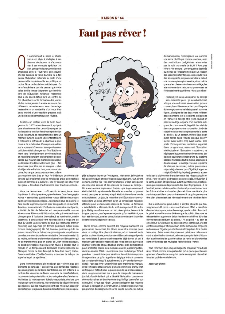 Croyez-vous toutefois que ces courageux humanistes aient donné officiellement une quelconque raison à ce refus ? Bien évidemment que non. L’annulation s’est faite en bonne et due forme, dans le secret des conseils d’administration, empruntant les habituelles et viles pratiques des partis politiques. Qu’ont-ils pourtant à cacher ? Ne font-ils pas que le bien en interdisant à ce dangereux militant d’extrême droite qu’est le rédacteur en chef de Kairos, bientôt prêt à rejoindre les rangs des skinheads en combat shoes, de venir parler ? Pourquoi ne supportent-ils pas publiquement leur décision ? La réponse est assez simple : ils n’ont aucunement les moyens d’étayer leur refus et les qualificatifs qu’ils m’accolent. Ceux-ci ne sont que le reflet d’un mimétisme niais et d’un conformisme inclusif qui leur assurent qu’ils ne seront pas exclus des instances officielles dont ils dépendent pour leur survie économique et mentale.