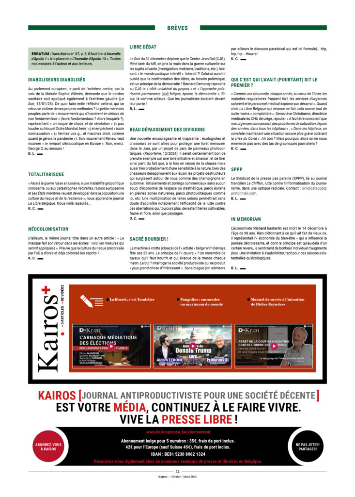 La décision éditoriale a fait parler, notamment en France, où Pascal Praud, animateur sur CNews et Europe1, a dénoncé un véritable ministère de la Vérité, digne de George Orwell. Ici, l’opportunisme politique ne s’est pas fait attendre, avec un Georges-Louis Bouchez, président du MR, proclamant : « La RTBF n’est pas le ministère de la Censure et de la Propagande ». Au contraire, elle l’est, monsieur Bouchez, depuis longtemps, et votre posture, feignant l’étonnement, révèle cette indignation sélective propre au vide politique, qui ne cherche que les occasions de taper sur « l’autre camp » pour se parer des contours de la vertu.