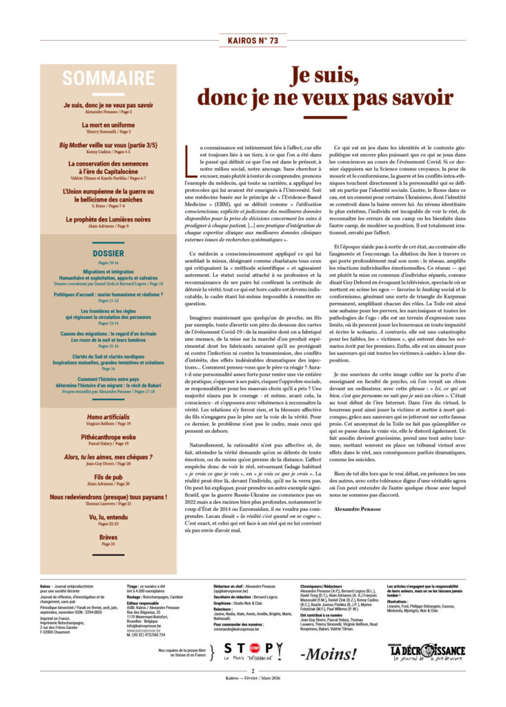 Ce qui est en jeu dans les identités et le contexte géopolitique est encore plus puissant que ce qui se joua dans les consciences au cours de l’événement Covid. Si ce dernier s’appuiera sur la Science comme croyance, la peur de mourir et le conformisme, la guerre et les conflits intra-ethniques touchent directement à la personnalité qui se définit en partie par l’identité sociale. L’autre, le Russe dans ce cas, est un ennemi pour certains Ukrainiens, dont l’identité se construit dans la haine envers lui. Au niveau identitaire le plus extrême, l’individu est incapable de voir le réel, de reconnaître les erreurs de son camp ou les bienfaits dans l’autre camp, de modérer sa position. Il est totalement irrationnel, envahi par l’affect.